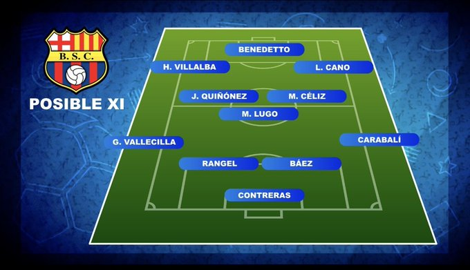 De acuerdo con la información compartida, el posible once estaría integrado por Contreras en el arco; Vallecilla, Rangel, Báez y Carabalí en la línea defensiva; M. Lugo, J. Quiñónez y M. Céliz en el mediocampo; mientras que H. Villalba, L. Cano y Benedetto conformarían el frente ofensivo.